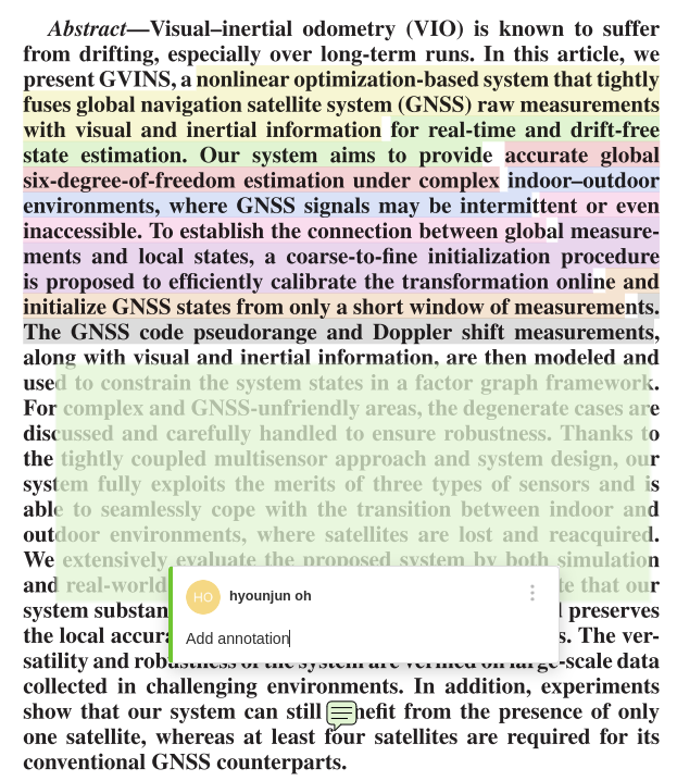 여기서 논문을 읽을 수도 있지만 다양한 색으로 하이라이트를 표시할 수 있다.