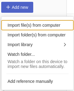 좌측 상단에 Add new에서 여러 방법으로 논문 추가가 가능하다.